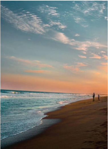 seaside corniche walk ; palm-fringed sunset.