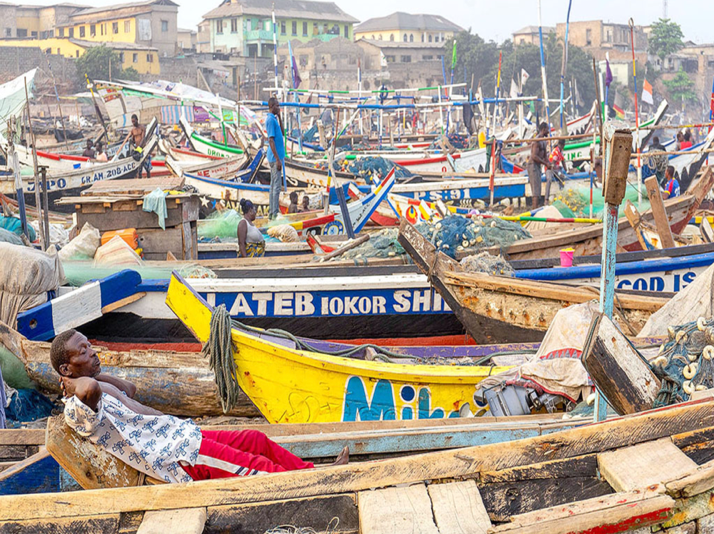 Boats resting on the shores of Grand-Popo Lagoon